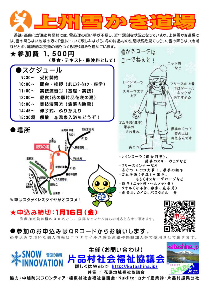 関東唯一の特別豪雪地帯の片品村では「上州雪かき道場2026」を行います。
