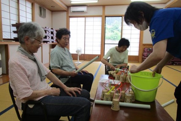 自己紹介(好きな野菜)、棒体操、手遊び(茶摘み)、紙コップ取り、紙パズルゲーム、スイ ... 続きを読む